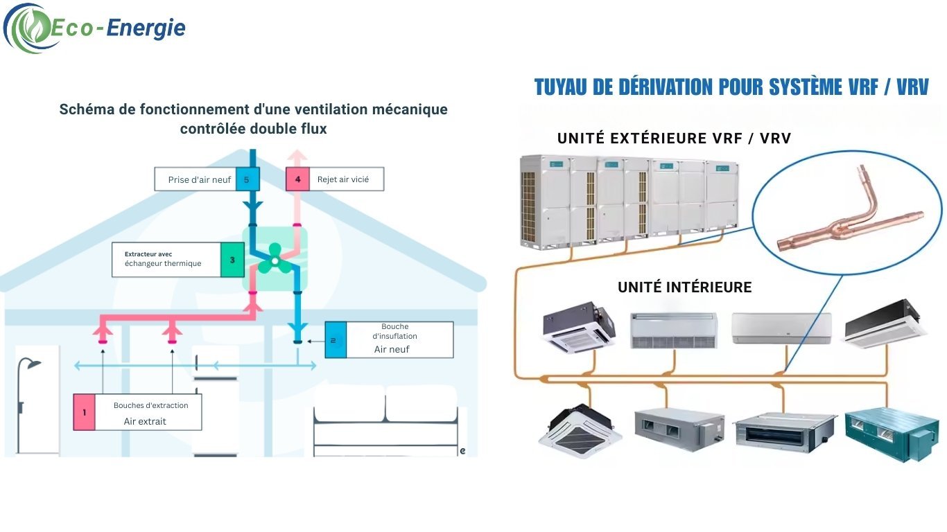Ajoutez le système VMC Double Flux : Si vous recherchez une solution plus écologique, le système VMC Double Flux permet de récupérer et de réutiliser la chaleur de l’air extérieur pour réduire la consommation d’énergie jusqu’à 70 %.